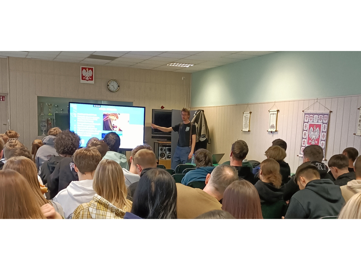 W ramach programu "Twoje Miasto- Twoja Scena" odbyło się spotkanie młodzieży z przedstawicielem MCK w Bydgoszczy. Uczniowie mieli okazję obejrzeć prezentację multimedialną i wysłuchać przykładów twórczości lokalnych artystów oraz poznać bogactwo bydgoskiej sceny muzycznej.
