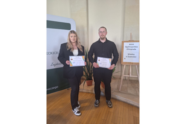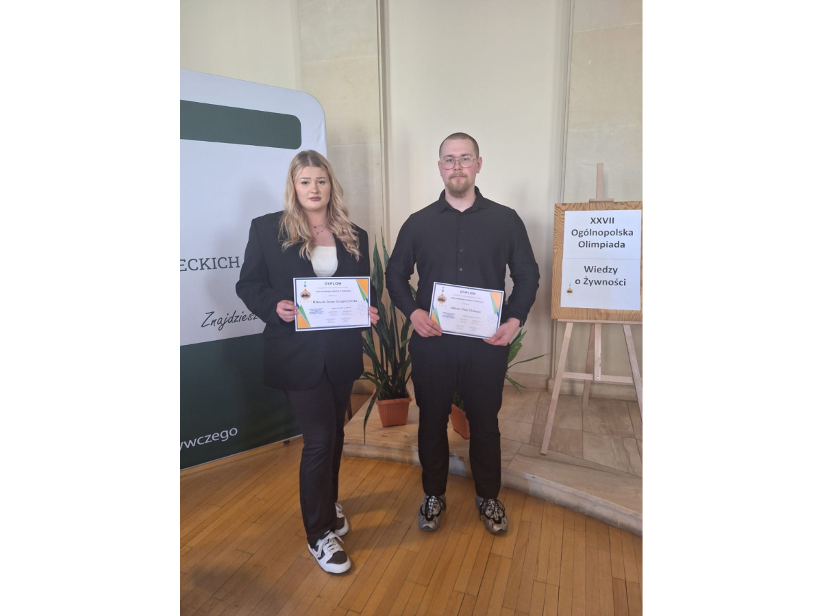 Wiktoria Grzegorzewska i Oliwier Ochman z klasy IV Tp przebrnęli z sukcesem przez dwa etapy olimpiady i zakwalifikowali się do etapu ogólnopolskiego. Finał olimpiady odbył się w Poznaniu. W pierwszym dniu odbyła się część pisemna w Zespole Szkół Przemysłu Spożywczego, a w drugim ustna na Uniwersytecie Ekonomicznym. Uczestnicy musieli wykazać się wiedzą interdyscyplinarną z zakresu bloku przetwórczego, bloku analitycznego, bloku ekonomicznego, bloku technicznego. Wiedza , którą zaprezentowali uczestnicy była na wysokim poziomie. Rywalizując ze sobą konfrontowali własne możliwości osiągnięć.