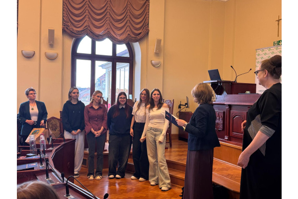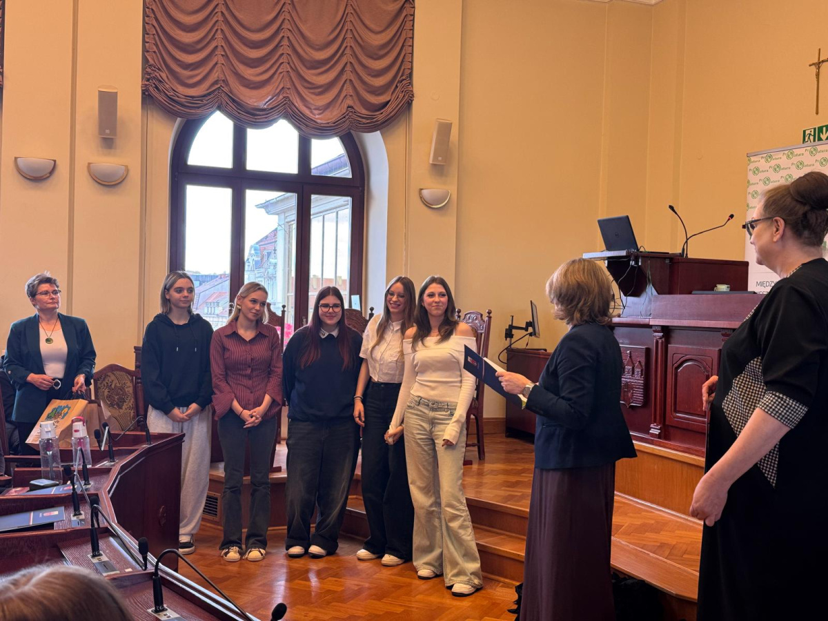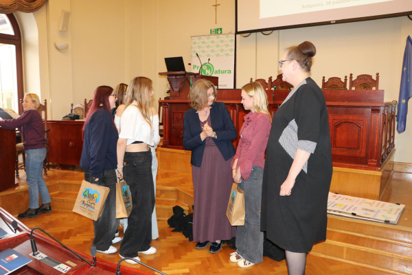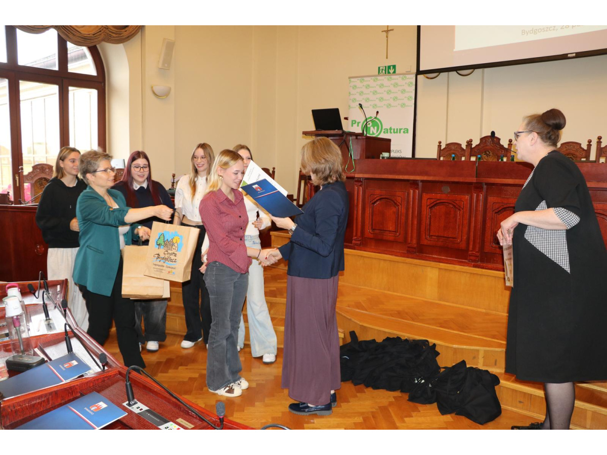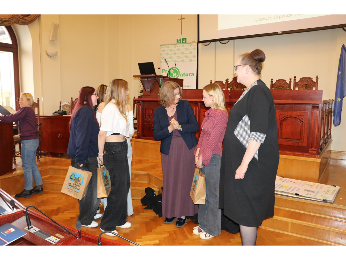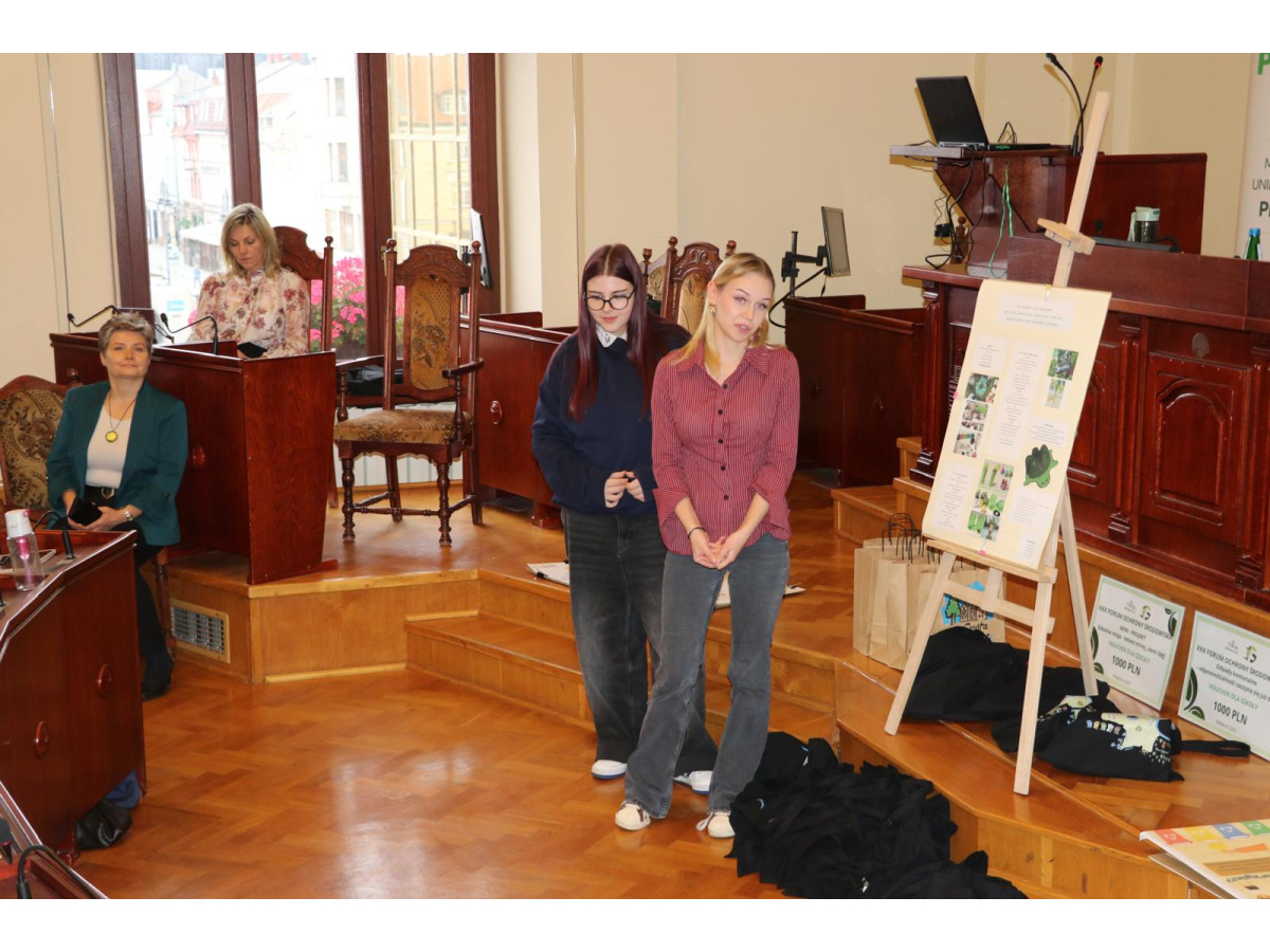 28.10. 2025 r. w Sali Sesyjnej Ratusza odbyło się XXX Forum Ochrony Środowiska organizowane przez Wydział Ochrony Środowiska UM Bydgoszczy, w którym wzięli udział uczniowie kilkunastu szkół ponadpodstawowych z Bydgoszczy. Naszą szkołę reprezentowały uczennice klasy 4 Lp2 – Mariia Chepurniak, Sylwia Kaczmarek, Marta Kalinowska, Marika Kozłowska oraz Adrianna Rogoś z opiekunem Magdaleną Gminska.